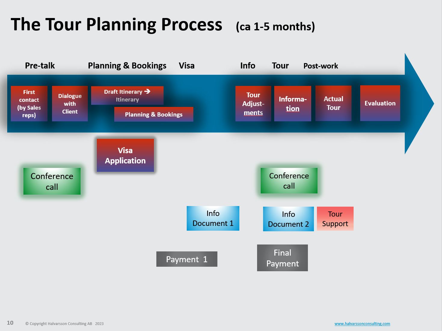 In a continuing dialogue with the client, we will together form the detailed itinerary of the tour.